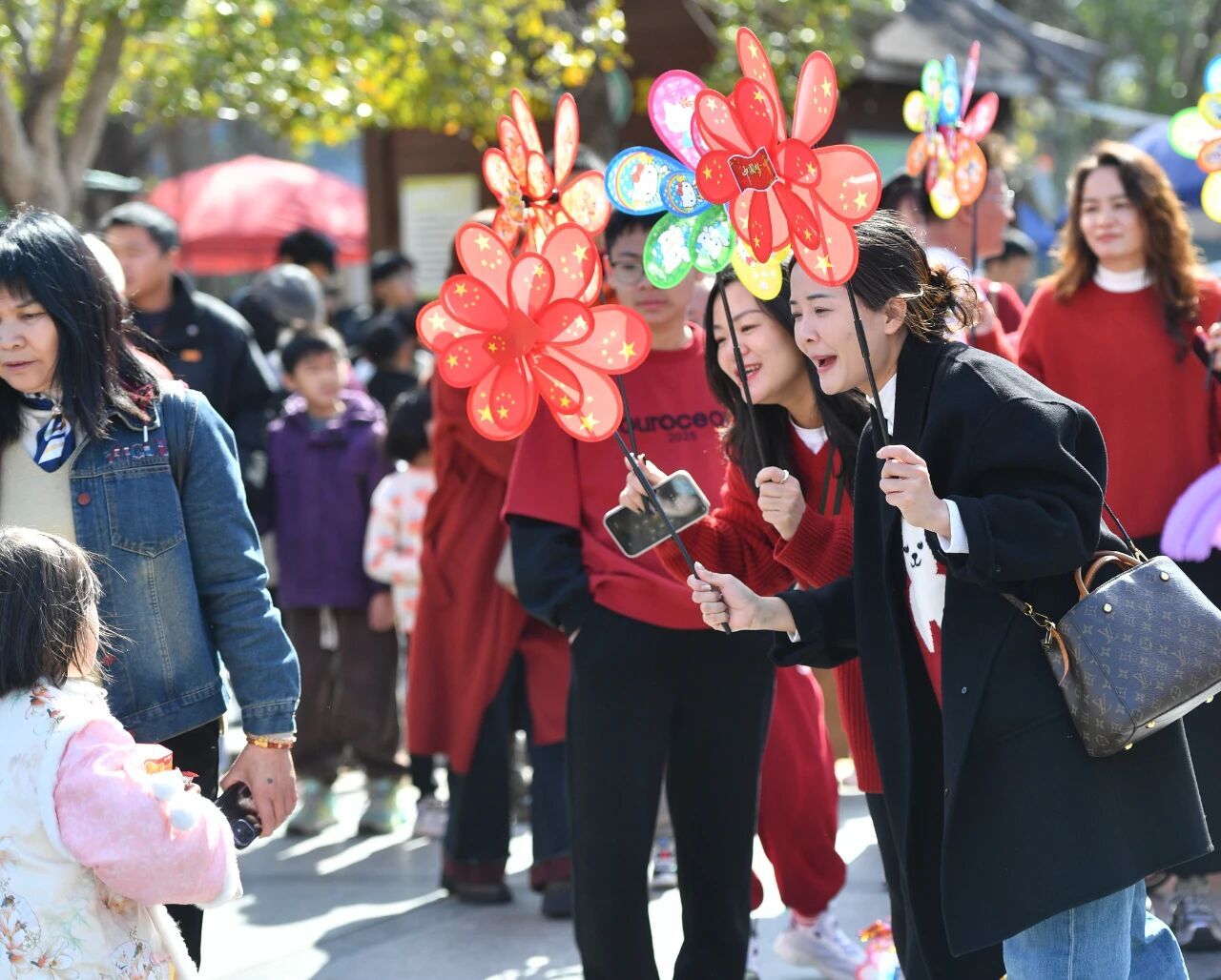 趁圩时亲朋好友欢笑嬉闹