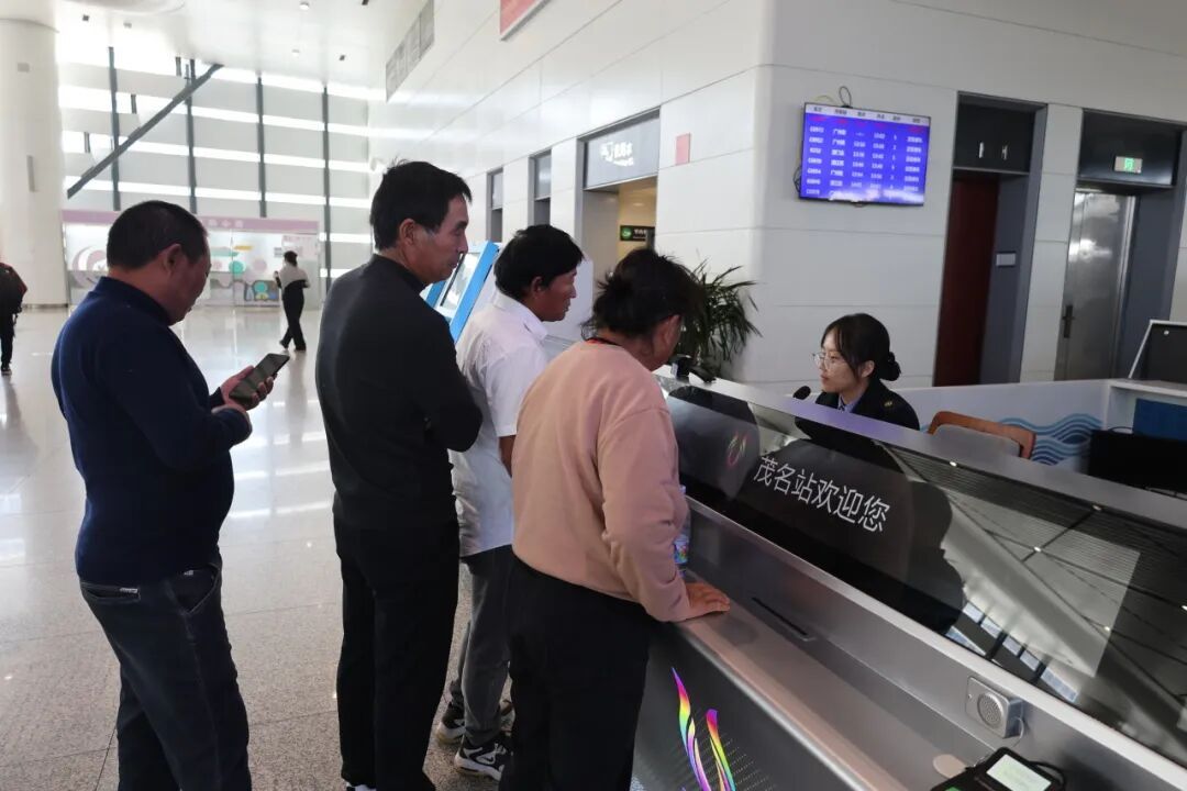 茂名站服务革新,打造 “验检售服合一” 便民新模式,这也是 2025 年底广湛高铁开通后的首次服务迭代,切实将 “以旅客为中心” 理念落到实处。车站将实名制验证、车票查验与售票服务上移整合,在南、北站房检票口旁同步设置一体化综合服务台。该服务台既能办理票务相关业务,又能即时解答线路查询、换乘指引、出行咨询等问题。尤其针对老年旅客等重点群体,集中化的服务窗口与 “面对面” 的专人引导,有效化解了他们在数字化出行时代的 “适配难题”。与此同时,茂名南站、茂名站 “好心茂名” 党员服务队主动靠前、暖心相伴,为重点旅客提供全流程 “一对一” 精准帮扶,针对行动不便的旅客,专门安排专人全程陪同引导,及时提供轮椅接送、行李搬运等专属贴心服务;同时在综合服务台精心备齐急救箱、针线包等暖心便民物资。