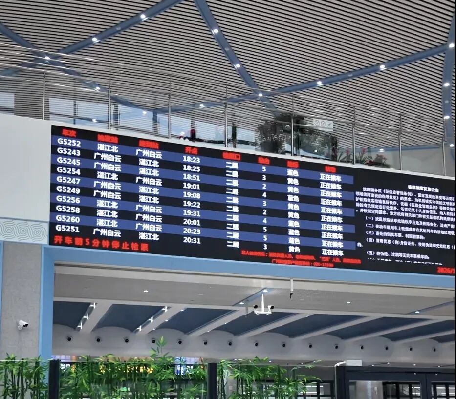 茂名南站以 “跨区直达 + 夜间覆盖” 为核心特色,动车组开行总量达 70 对(图定 34.5 对、春运动车组临客 24.5 对)。4 趟始发终到列车精准填补夜间跨城出行空白:C6744 次(茂名南—深圳,3:00 始发)、0C6706 次(茂名南—广州白云,3:46 始发)及C6746/3次(2:41 终到)、C6708/5 次(3:18 终到)。同时,17 趟动车组终到站调整为广州站,G5238 次(19:52 发车)、G5240 次(20:18发车)终到站变更为广州新塘,大幅减少旅客换乘环节与旅途耗时。