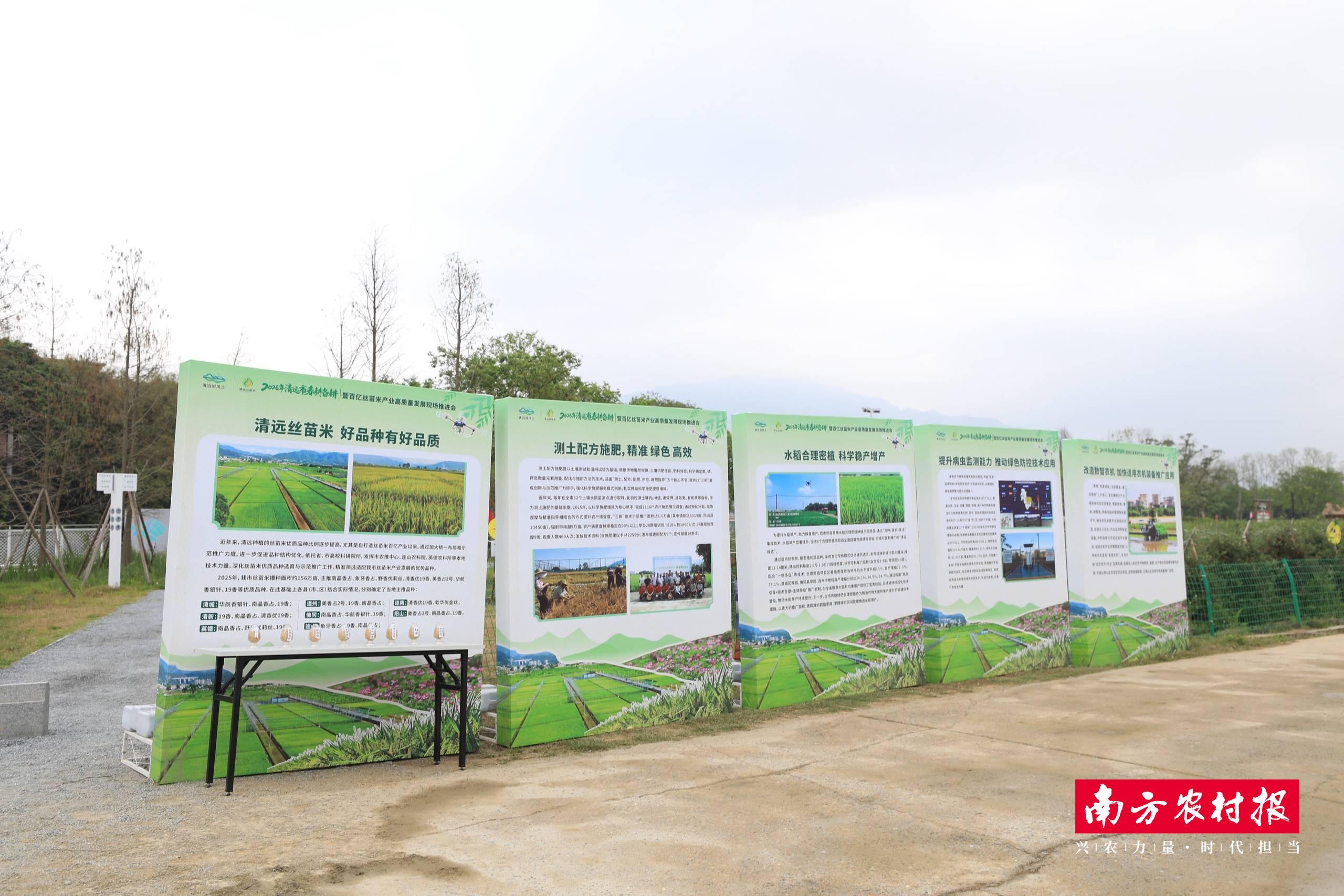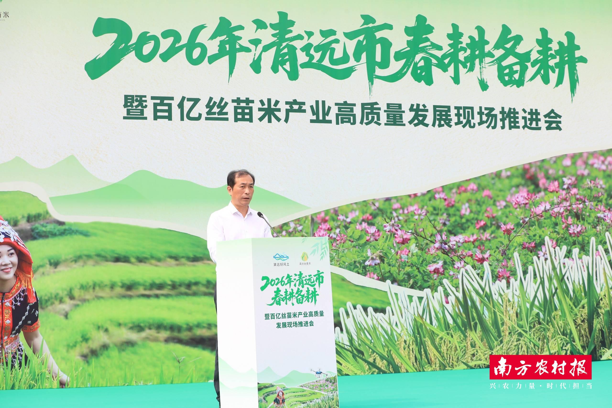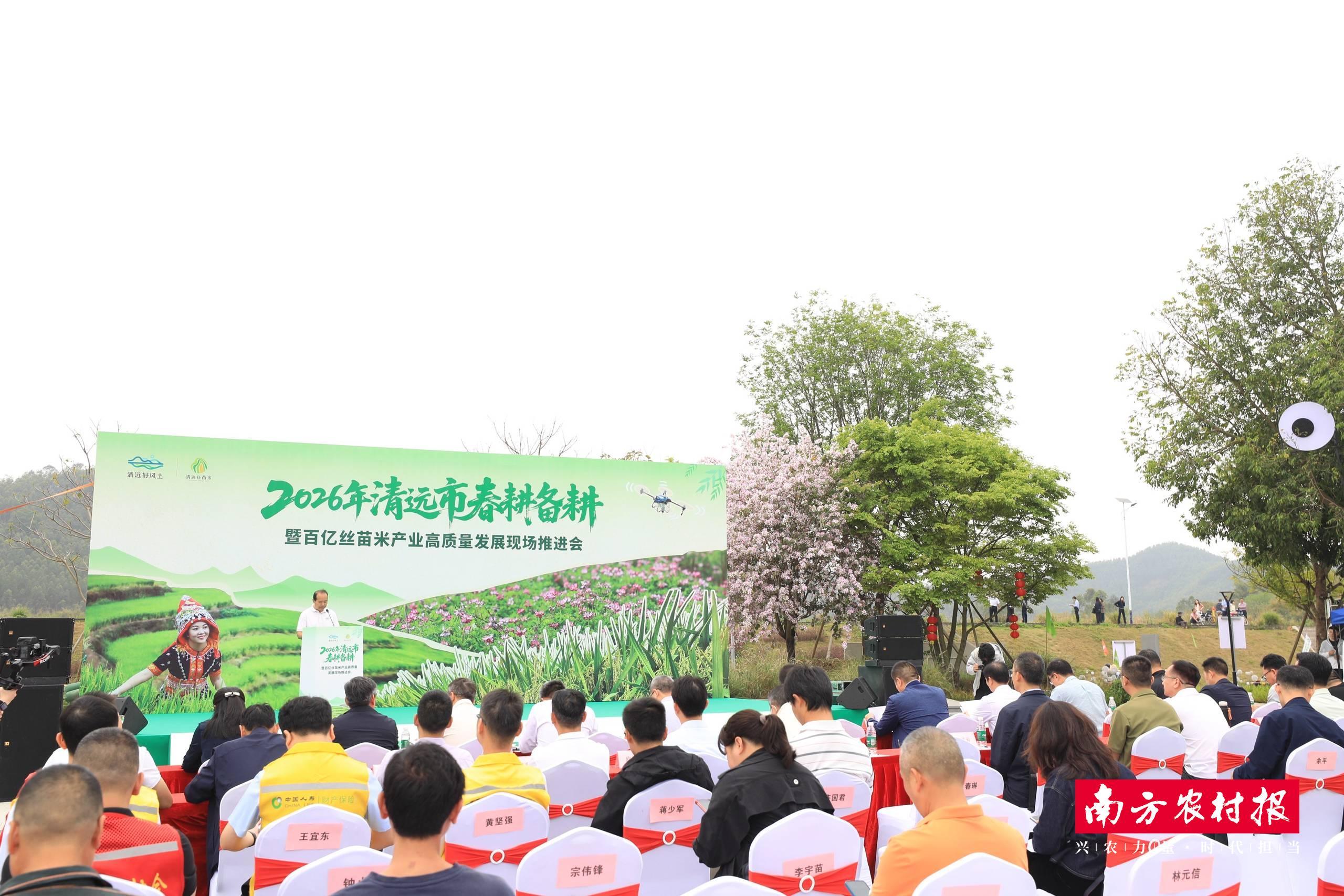 当天,2026年清远市春耕备耕暨百亿丝苗米产业高质量发展现场推进会在这里举行。据介绍,2025年,清远市超额完成省下达任务指标,全市粮食种植面积达226.5万亩,总产量78.2万吨。据悉,清远市2026年计划春耕春种面积达259.77万亩,比上年增加0.85万亩,持续为全年粮食稳产增产奠定坚实基础。
